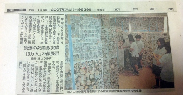 彼らは原爆投下で亡くなった方たち約10万人分の写真を新聞や雑誌から切り抜きで集め、教室に展示したのです。